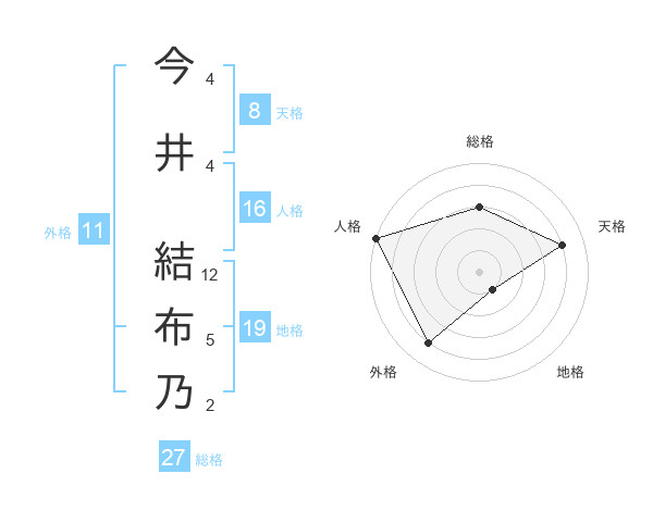 今井 結布乃さんを姓名の画数から五運を鑑定