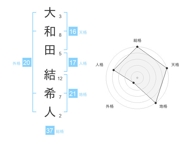 大和田 結希人さんを姓名の画数から五運を鑑定