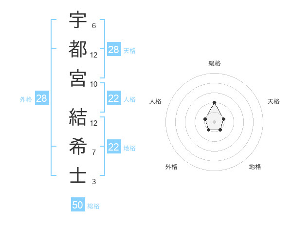 宇都宮 結希士さんの総格は50画の2点!