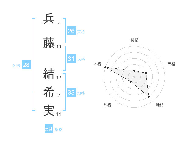 兵藤 結希実さんを姓名の画数から五運を鑑定