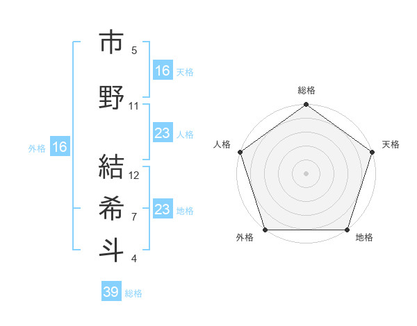 市野 結希斗さんの地格は23画の5点!