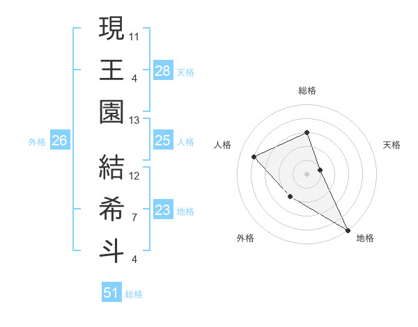 現王園 結希斗さんの総格は51画の3点!