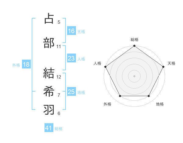 占部 結希羽さんの総格は41画の5点!