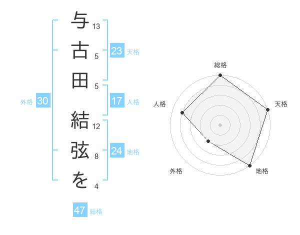 与古田 結弦をさんの総格は47画の5点!