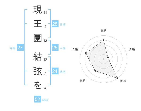 現王園 結弦をさんの総格は52画の4点!