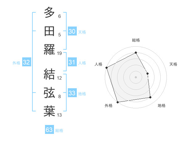 多田羅 結弦葉さんの総格は63画の4点!