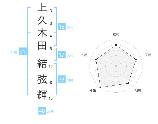 上久木田 結弦輝さんを姓名の画数から五運を鑑定