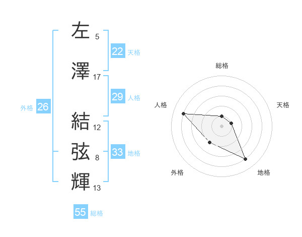 左澤 結弦輝さんの天格は22画の1点!