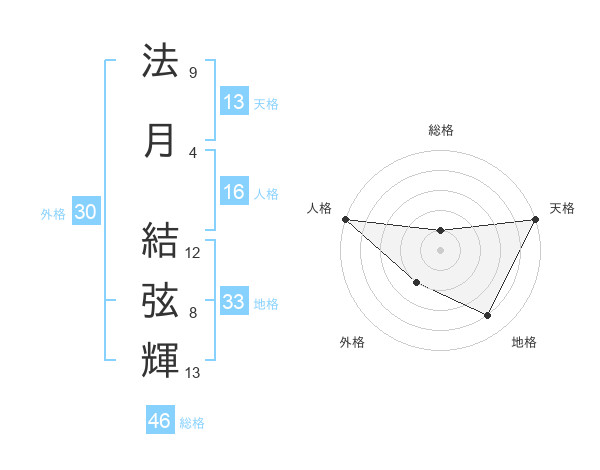 法月 結弦輝さんを姓名の画数から五運を鑑定