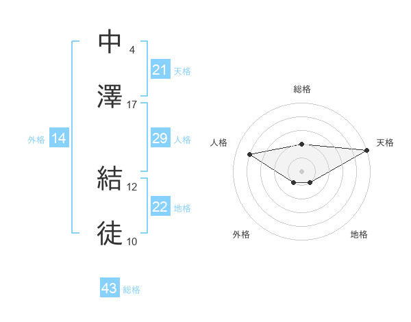 中澤 結徒さんの総格は43画の2点!
