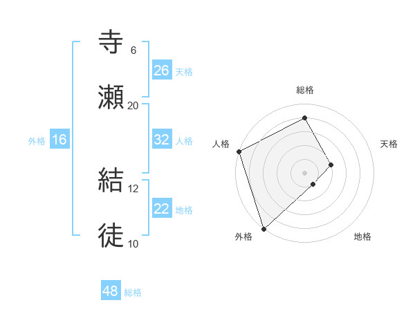 寺瀬 結徒さんの総格は48画の4点!
