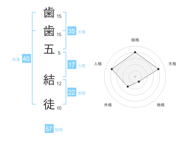 歯歯五 結徒さんを姓名の画数から五運を鑑定
