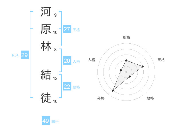 河原林 結徒さんを姓名の画数から五運を鑑定