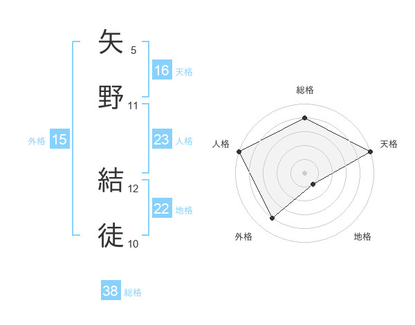 矢野 結徒さんを姓名の画数から五運を鑑定