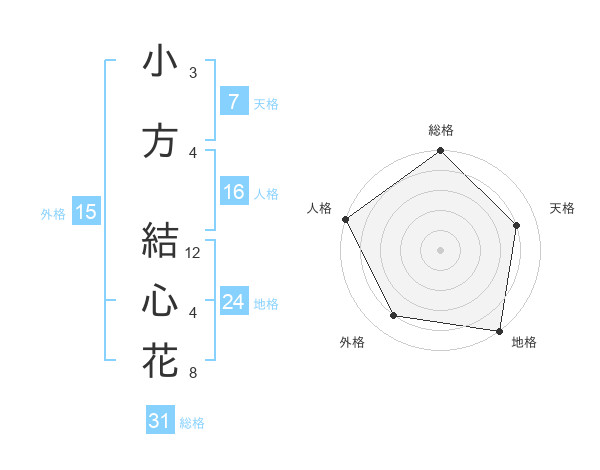 小方 結心花さんの総格は31画の5点!