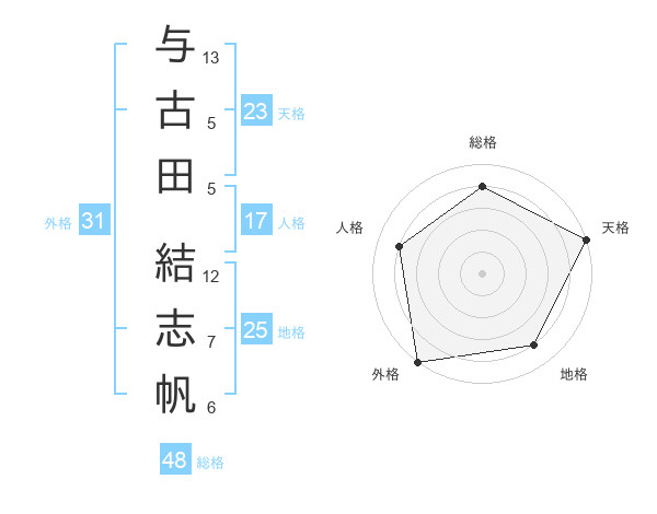 与古田 結志帆さんを姓名の画数から五運を鑑定