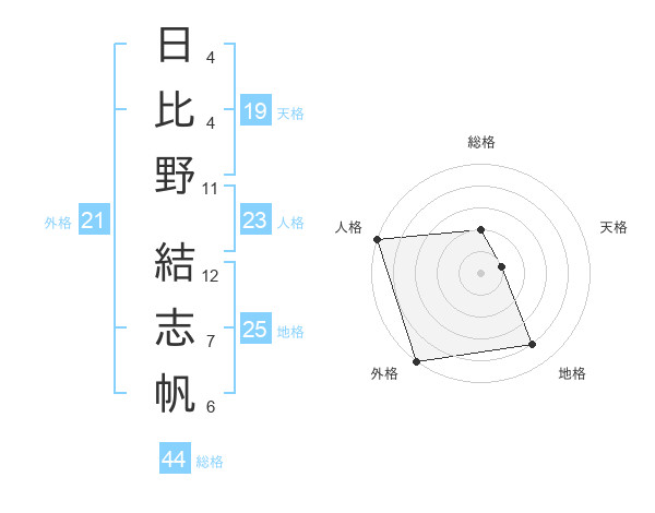 日比野 結志帆さんを姓名の画数から五運を鑑定