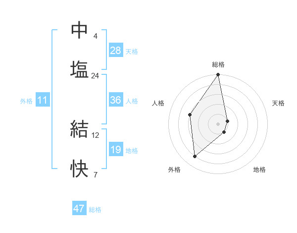 中塩 結快さんの総格は47画の5点!