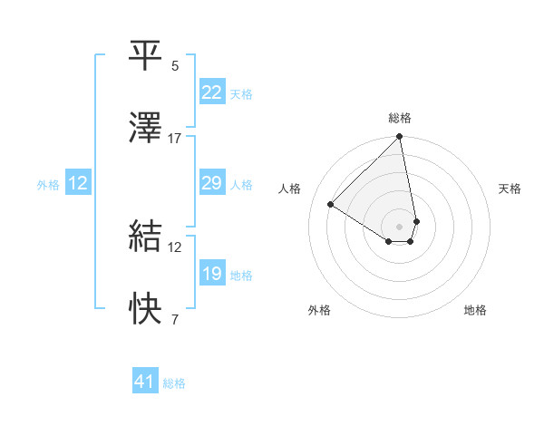 平澤 結快さんの総格は41画の5点!