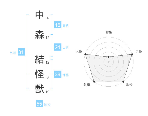 中森 結怪獣さんを姓名の画数から五運を鑑定