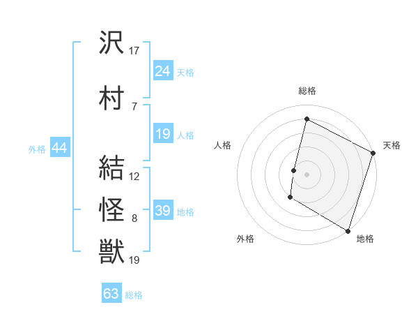 沢村 結怪獣さんを姓名の画数から五運を鑑定