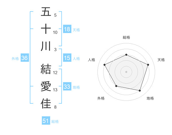五十川 結愛佳さんを姓名の画数から五運を鑑定