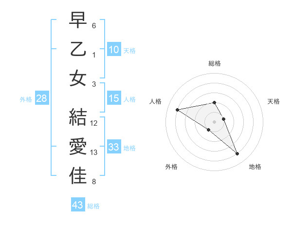 早乙女 結愛佳さんの総格は43画の2点!