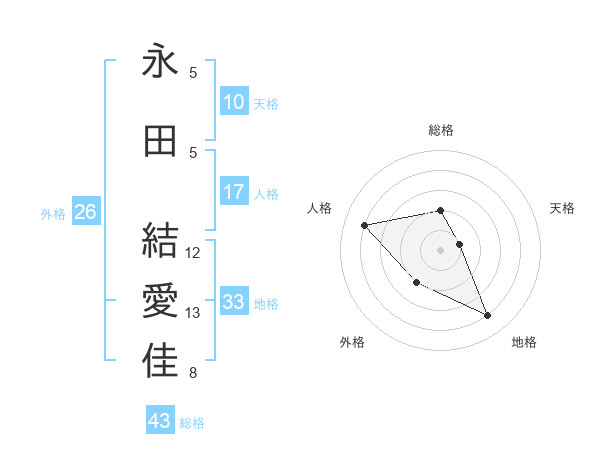 永田 結愛佳さんを姓名の画数から五運を鑑定