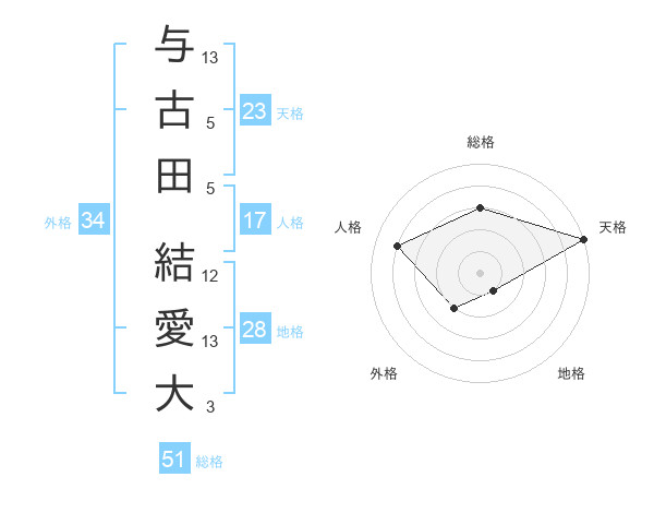 与古田 結愛大さんを姓名の画数から五運を鑑定