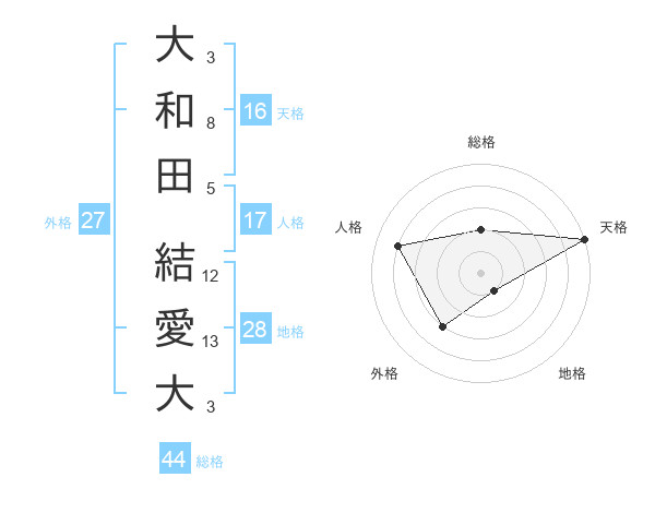 大和田 結愛大さんの総格は44画の2点!