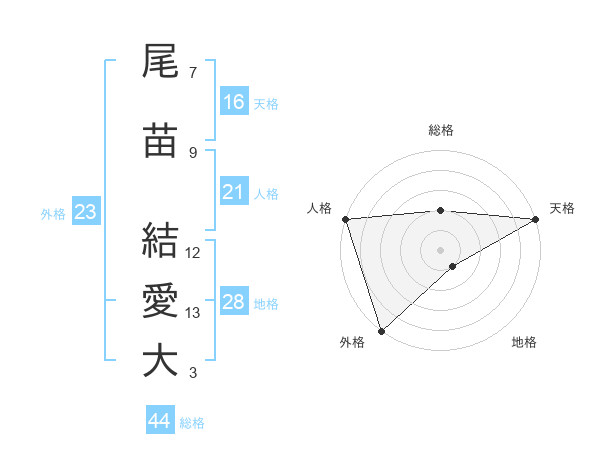 尾苗 結愛大さんを姓名の画数から五運を鑑定