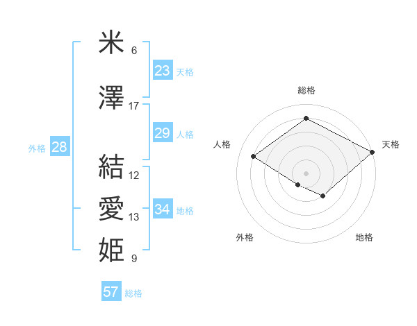 米澤 結愛姫さんの天格は23画の5点!