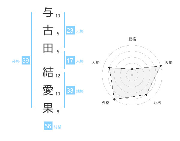 与古田 結愛果さんを姓名の画数から五運を鑑定