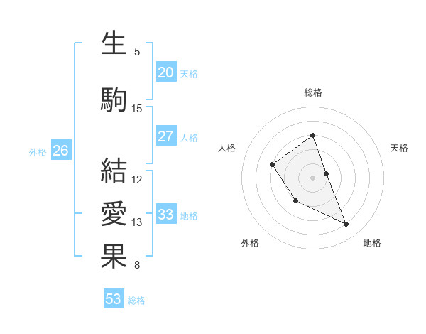生駒 結愛果さんを姓名の画数から五運を鑑定
