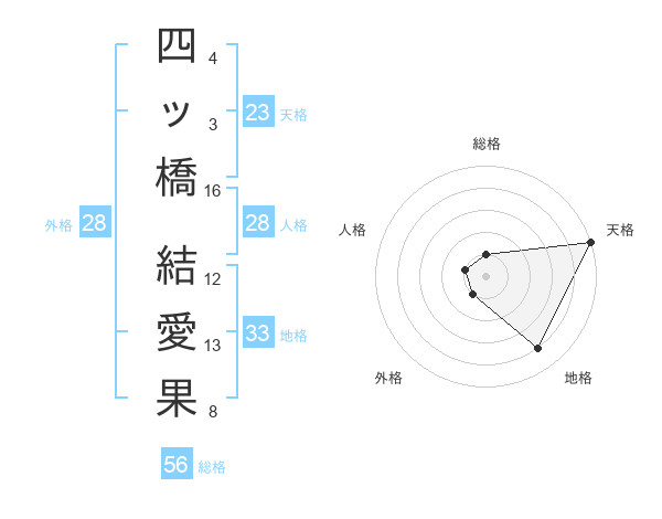四ッ橋 結愛果さんの外格は28画の1点!