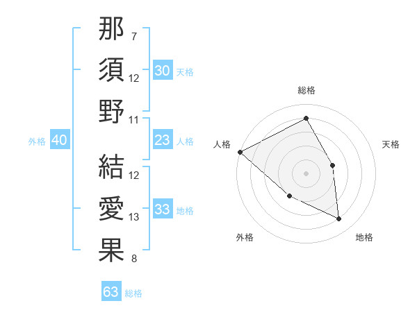 那須野 結愛果さんを姓名の画数から五運を鑑定