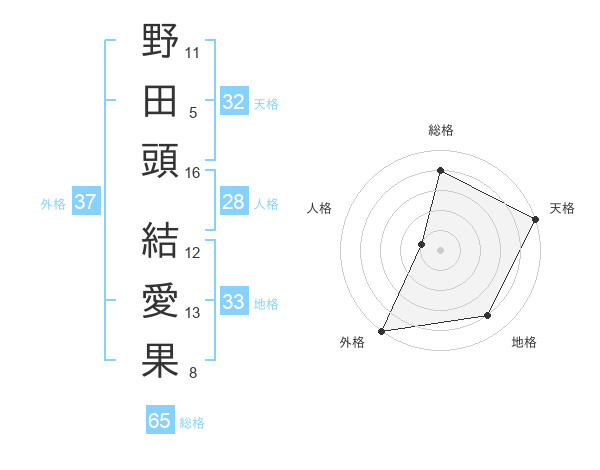 野田頭 結愛果さんを姓名の画数から五運を鑑定