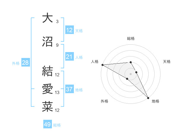 大沼 結愛菜さんを姓名の画数から五運を鑑定