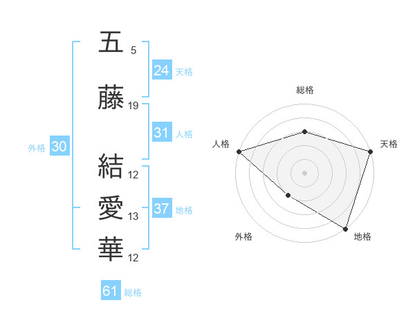 五藤 結愛華さんの総格は61画の3点!