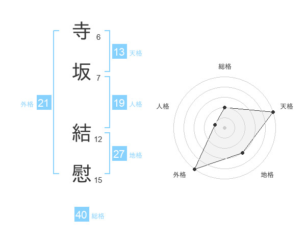 寺坂 結慰さんを姓名の画数から五運を鑑定