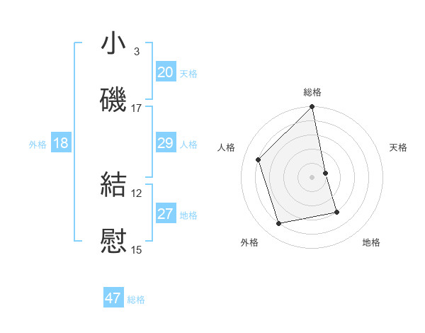 小磯 結慰さんを姓名の画数から五運を鑑定