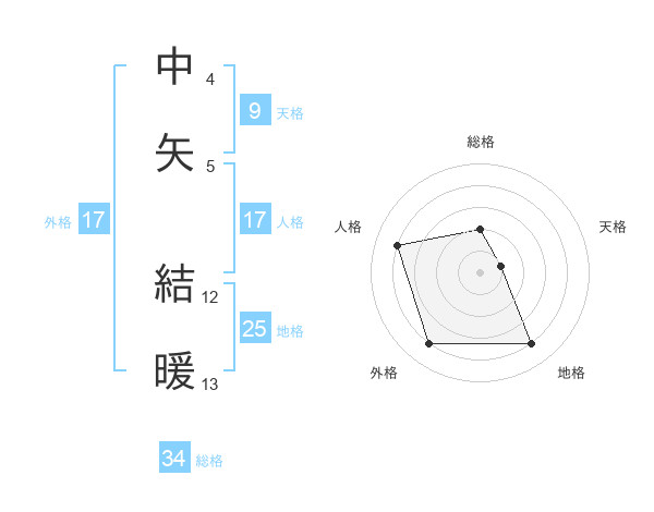中矢 結暖さんの外格は17画の4点!