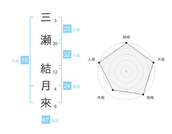 三瀬 結月來さんを姓名の画数から五運を鑑定