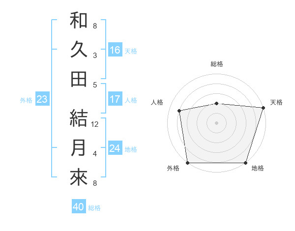和久田 結月來さんを姓名の画数から五運を鑑定