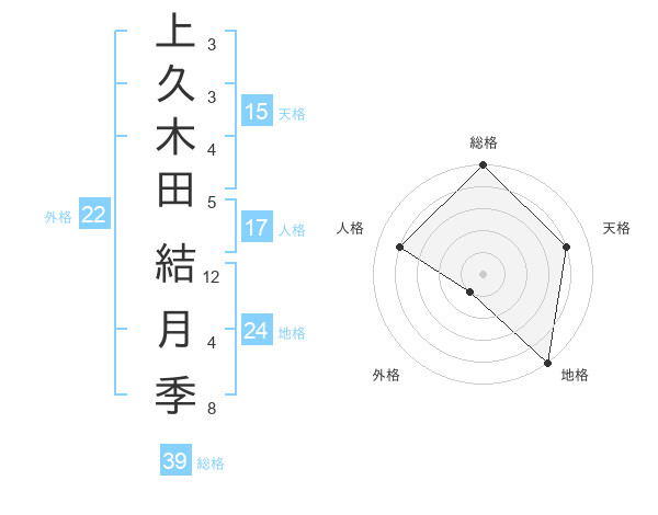 上久木田 結月季さんの総格は39画の5点!