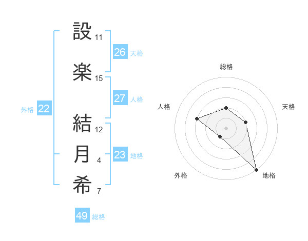 設楽 結月希さんの総格は49画の2点