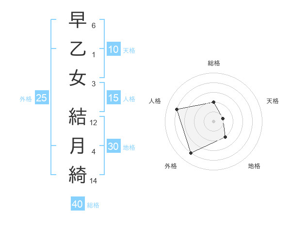 早乙女 結月綺さんの総格は40画の2点