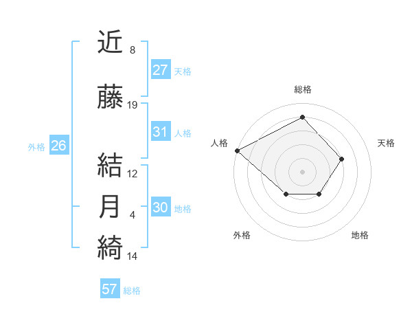 近藤 結月綺さんを姓名の画数から五運を鑑定