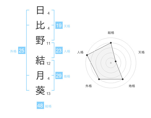 日比野 結月葵さんを姓名の画数から五運を鑑定
