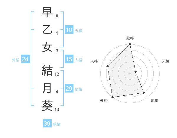 早乙女 結月葵さんを姓名の画数から五運を鑑定